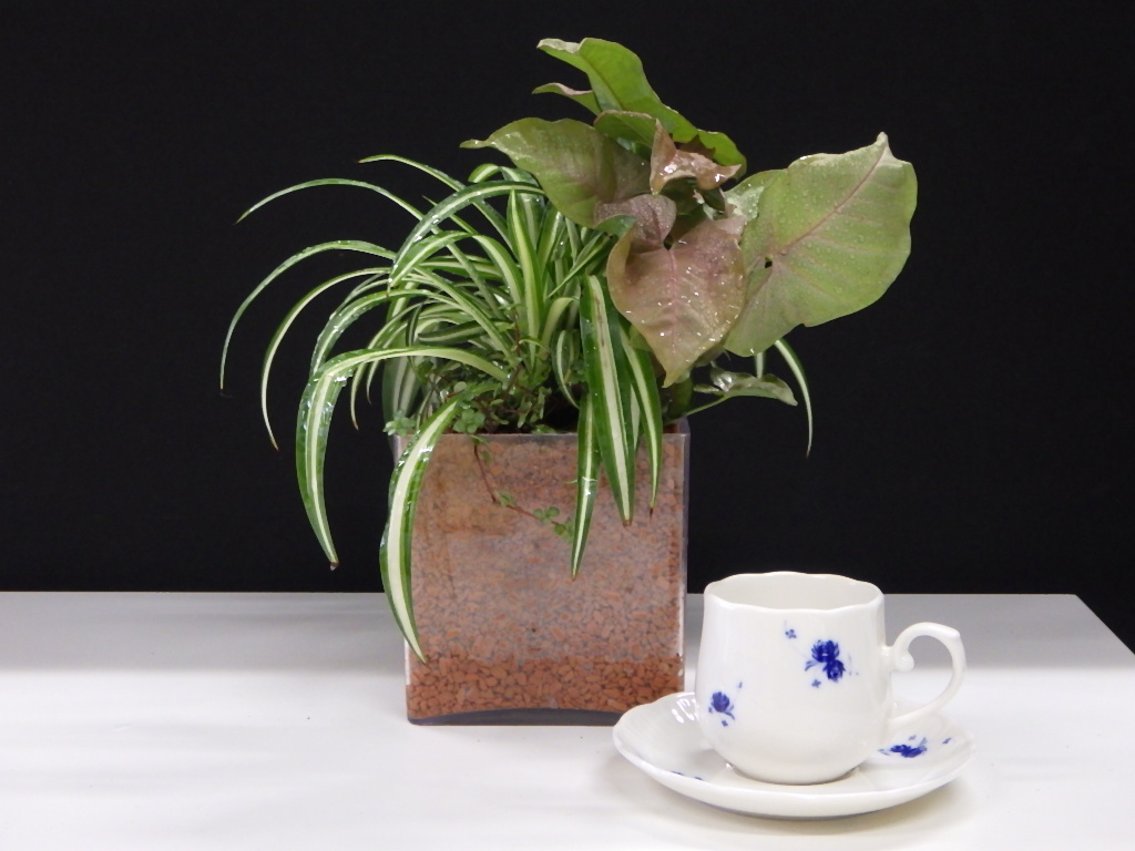 ◆内容:ハイドロカルチャー(人口の土)で観葉植物の寄せ植えをつくります。